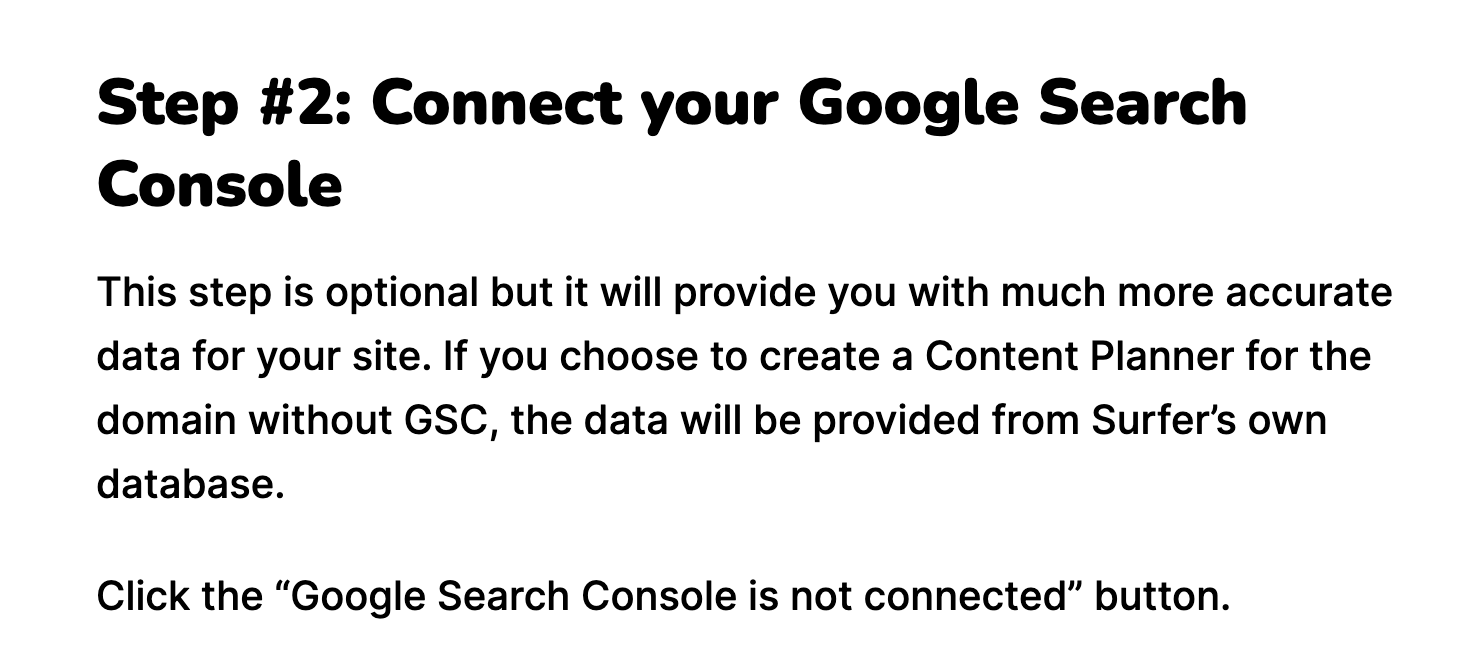 In order to rank in organic search, your site needs to be crawled and indexed. Google Search Console provides a report of how many of your live URLs have been indexed by Google. If you see a discrepancy between these two numbers, this means some of your pages have not been indexed and may require additional optimization. Connecting to GSC is one of the first steps we suggest you take when using Surfer to audit and optimize your content. Surfer can help you to do a domain-wide audit to find gaps in your content strategy and help your efforts go further.