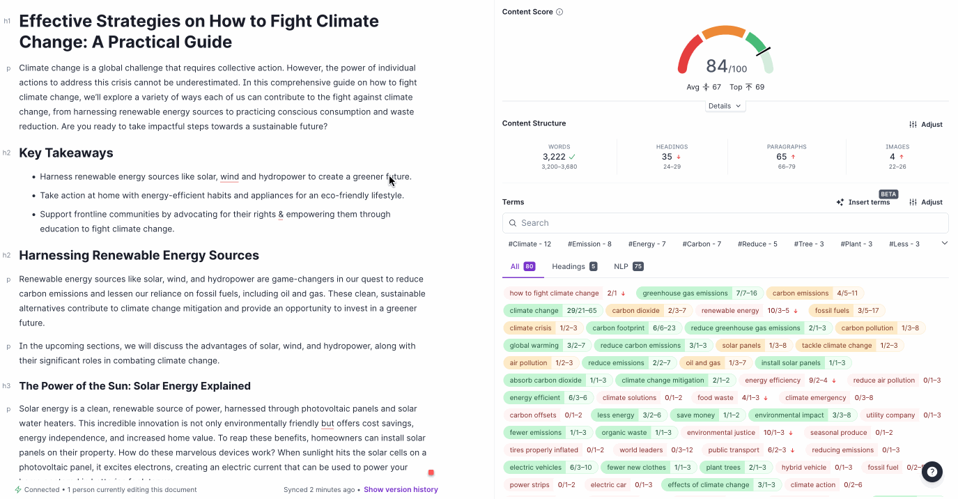 Structuring your article through header tags (H1, H2) and including related keywords within subheadings and your paragraphs helps search engines understand your page's content and structure.