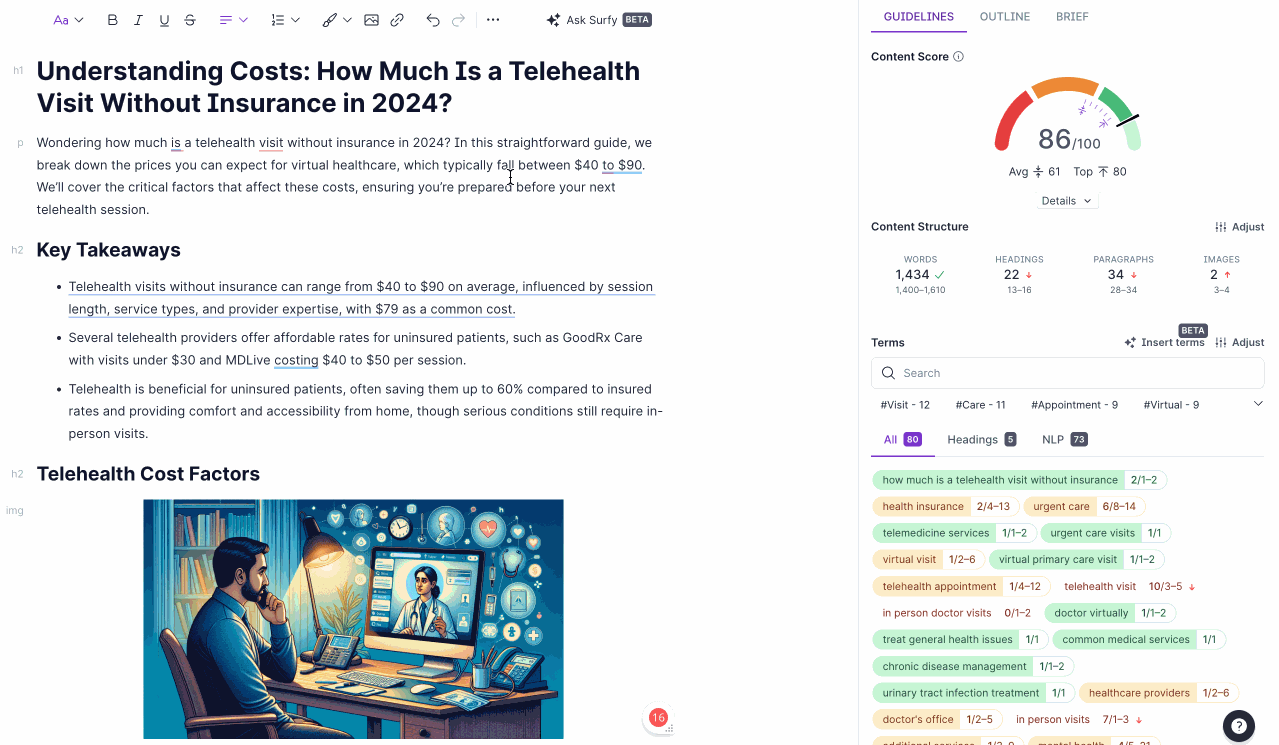 Surfer will generate a list of keyword ideas that are thematically linked to your main topic.