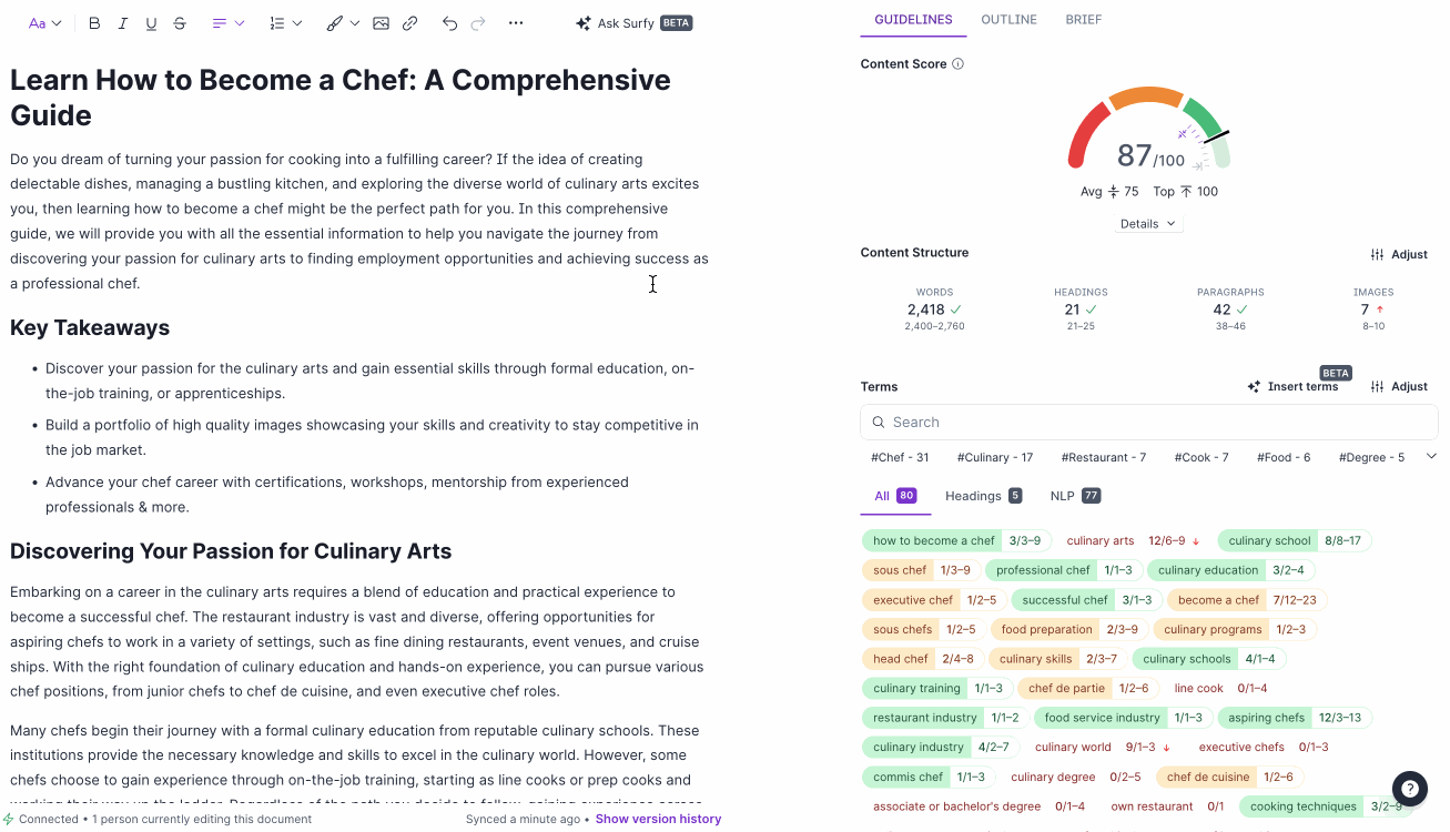 Manual keyword research takes hours and is a recurring task, so an agency might use a keyword research tool like Surfer’s Keyword Research.