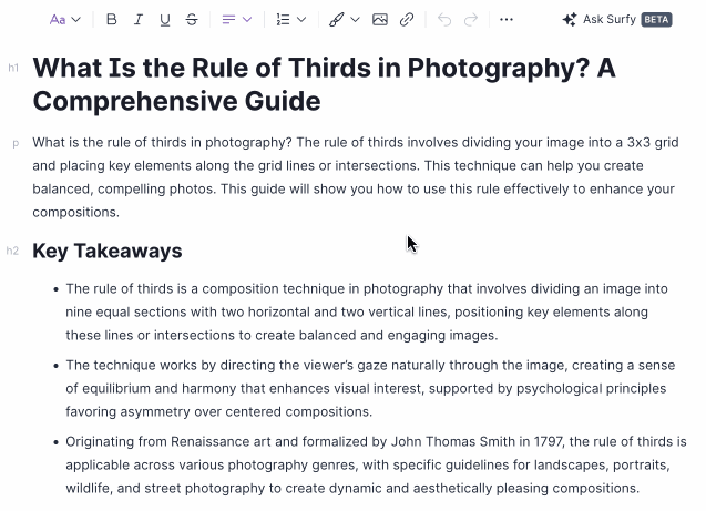 Instead of writing long-form content from scratch, use Surfer to generate content based on other pages of your choosing.