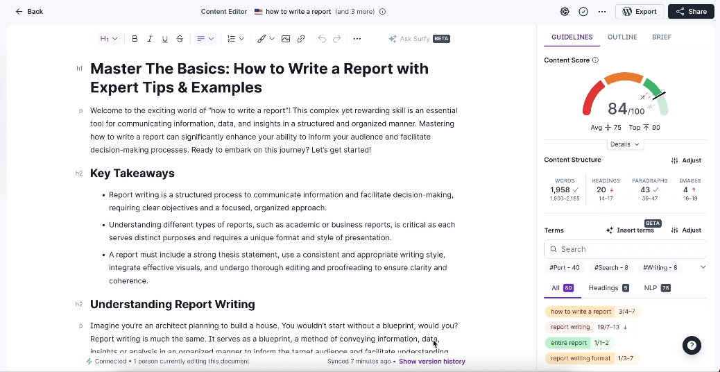 For instance, Surfy, our AI-powered writing assistant, can help you with specific tasks, such as improving sentence clarity and expanding on ideas—perfect for speeding up editing.