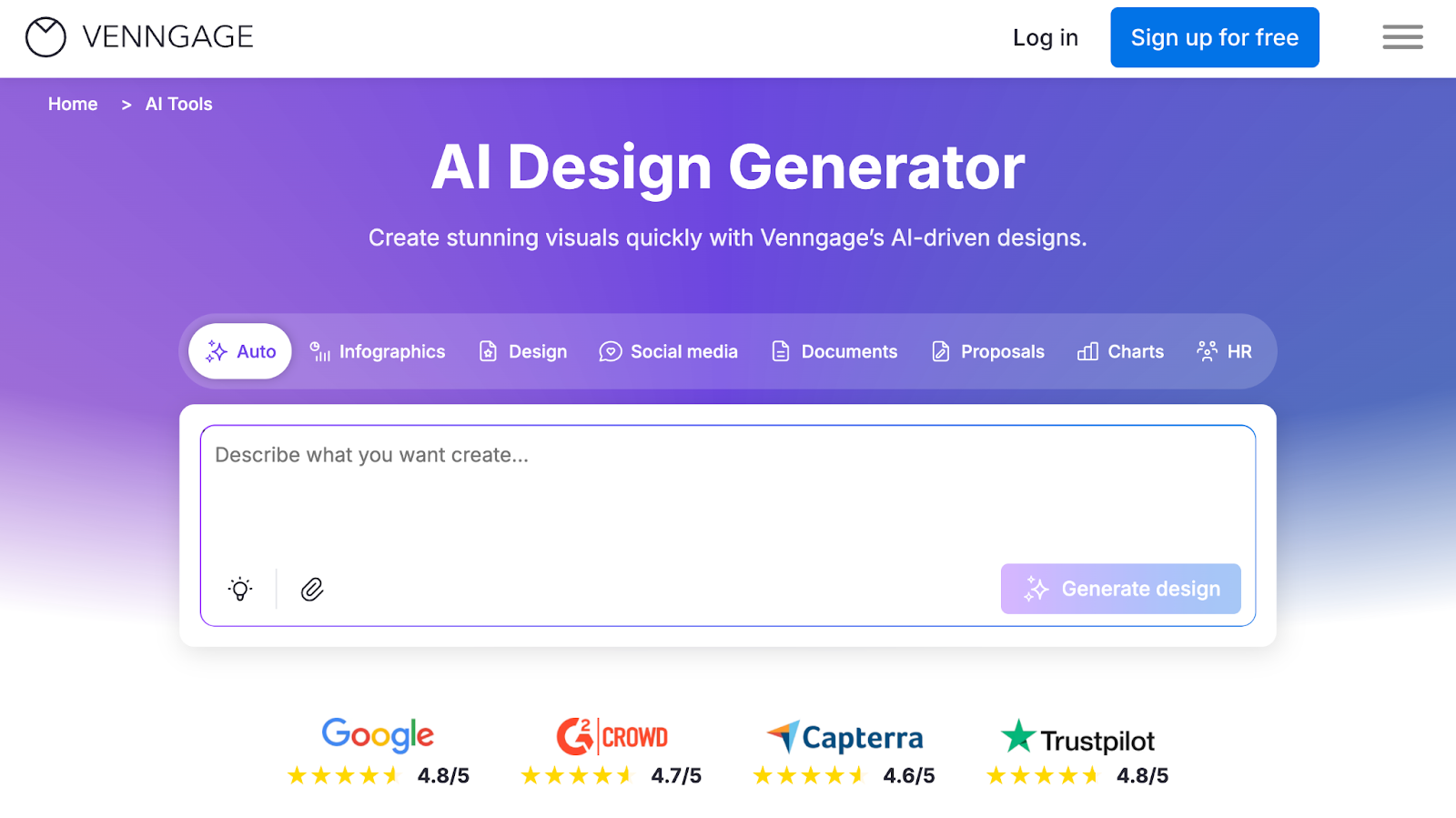 Venngage generates designs for your prompt, and with AI Content Auto-Fill, your template comes pre-loaded with text and visuals that fit your brand. It’s an easier way to get past the blank page and focus on the message you want to share.