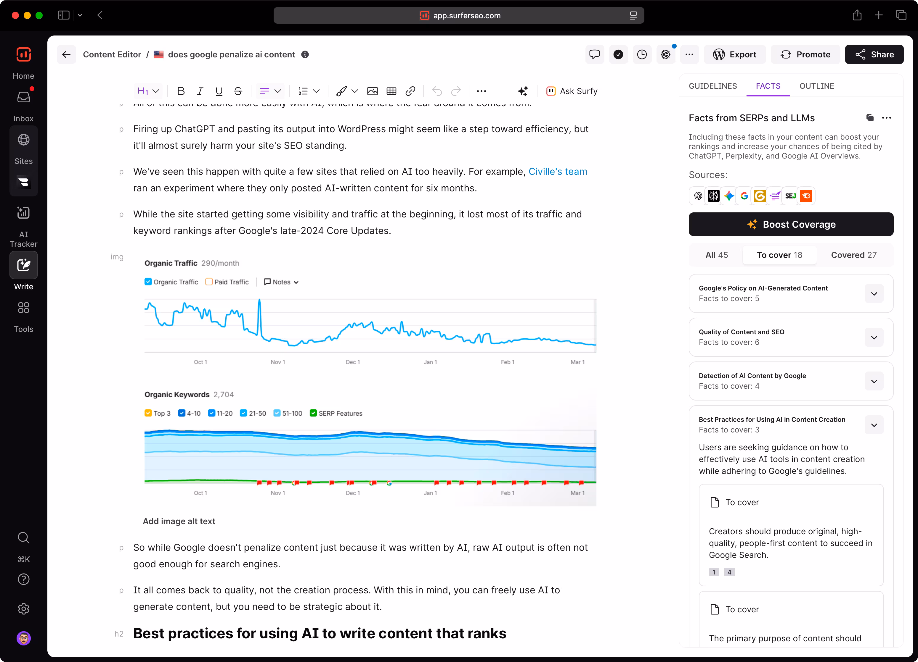You do more than write words to meet deadlines. You shape discovery and trust. Surfer helps your team rank in SERPs and get cited by AI, without sacrificing voice, tone, or quality. Surfer also keeps writers, editors, and SEOs aligned — so every piece strengthens your authority.