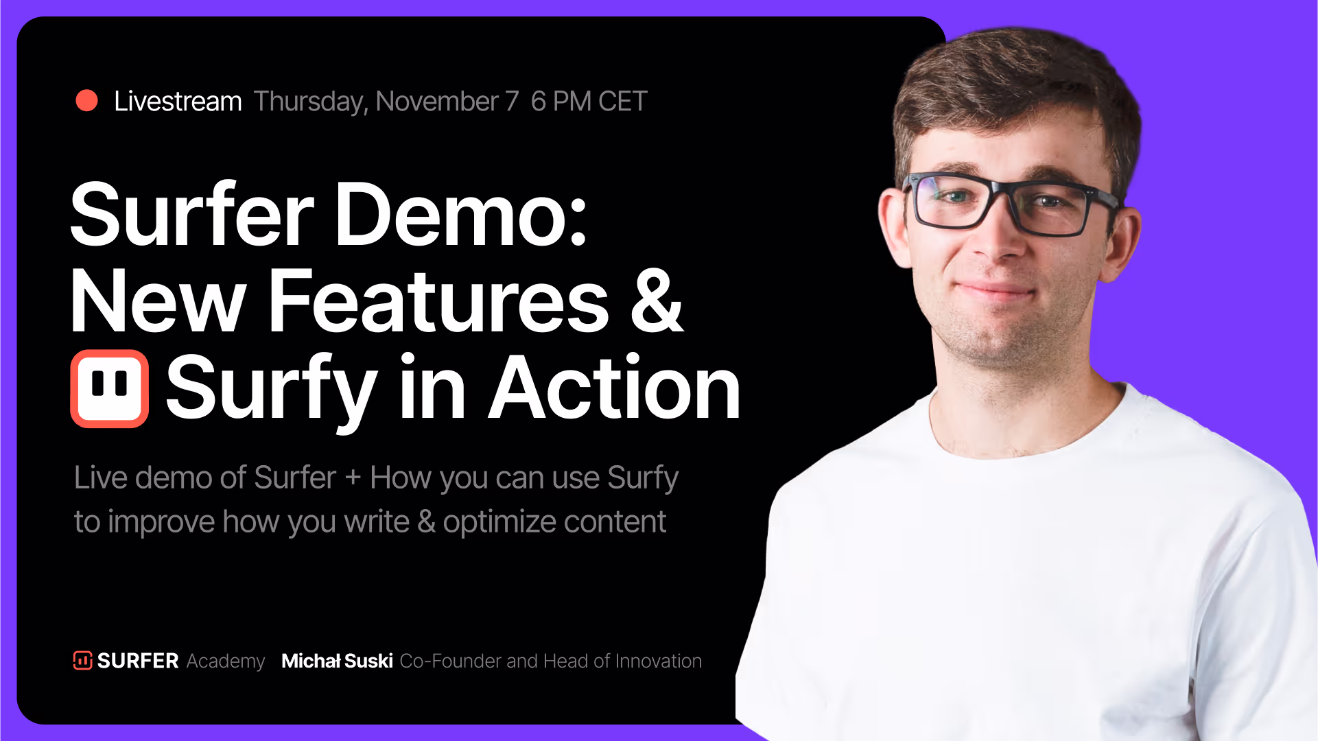 Weekly livestreams with Team Surfer. You'll get sneak peeks, product deep-dives and a chance to ask questions!