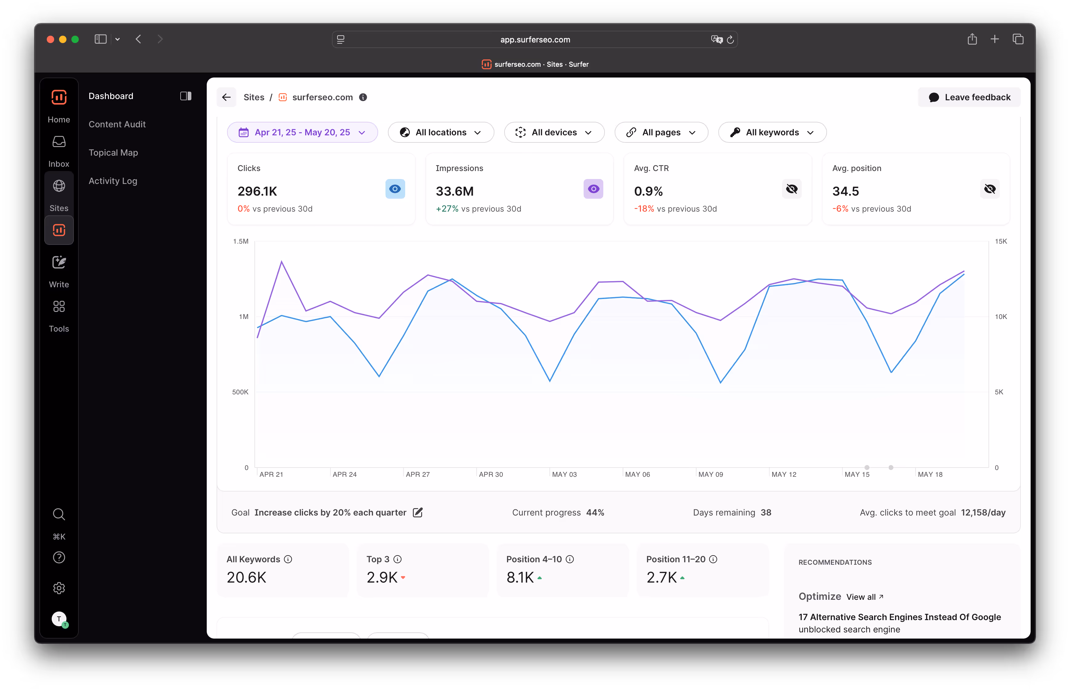 Surfy, our AI ranking assistant, works across your optimization process. Ask questions. Get quick fixes. Make changes on the fly.