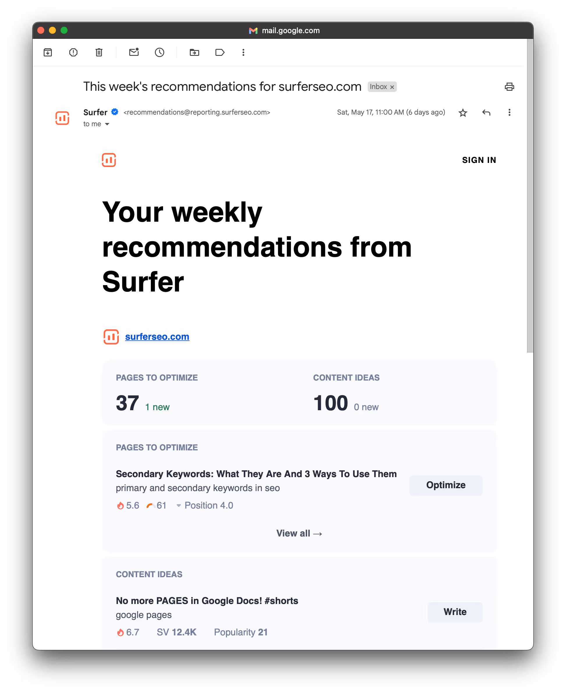 That’s a serious signal. If we assume on-page SEO makes up roughly a third of Google’s algorithm, Surfer’s Content Score helps you unlock about 90% of the on-page potential.