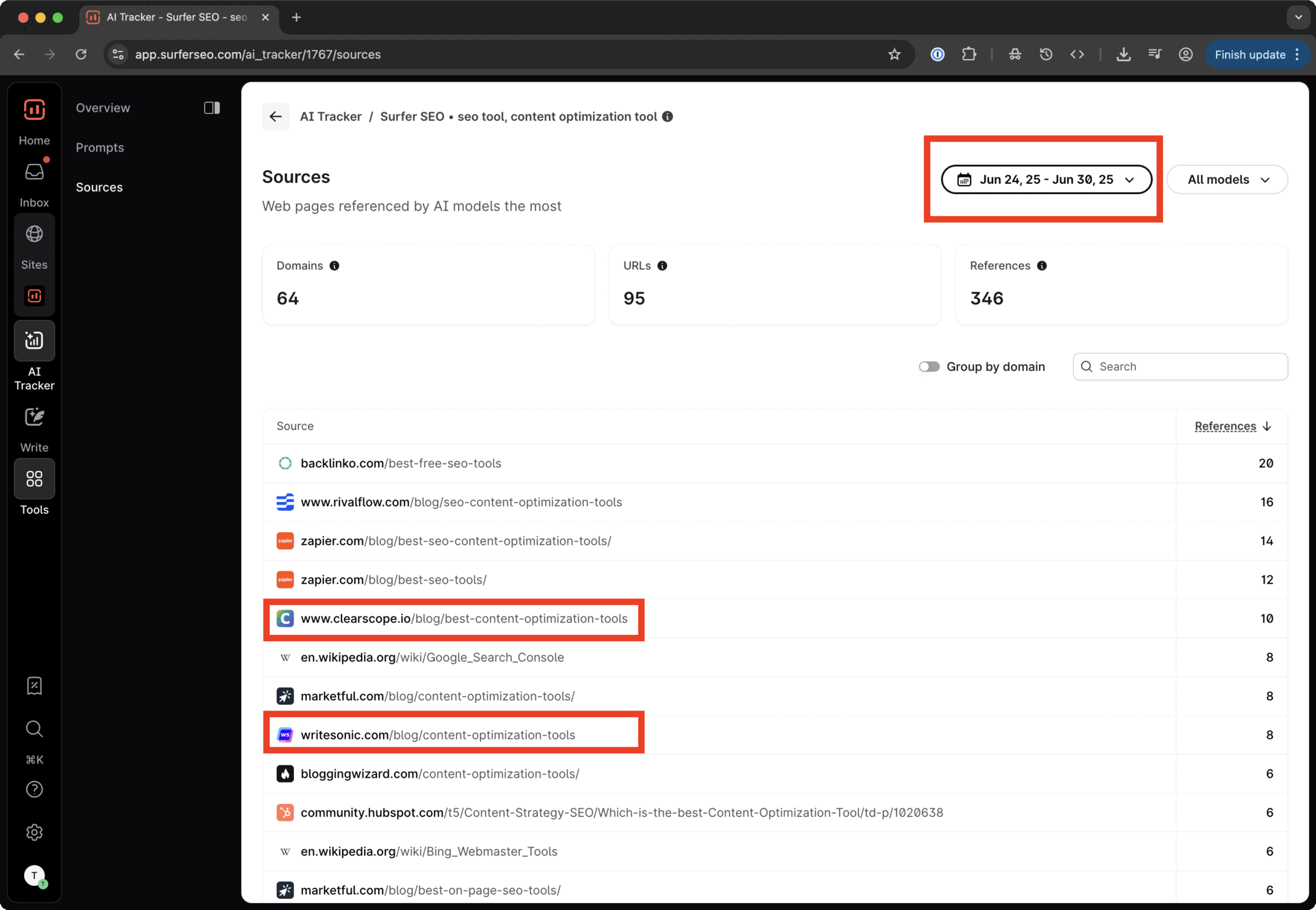 - Add 50–100 prompts to Surfer’s AI Tracker across problem, category, and BOFU stages.