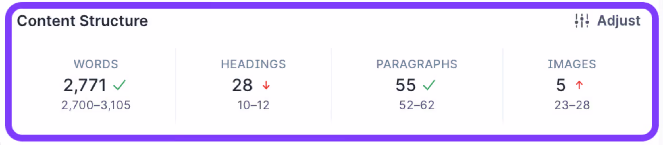 Surfer's Content Editor has this broken down for you, so you know the exact ideal structure of each article.