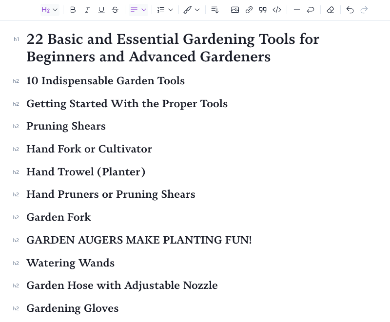 Surfer will analyze the top ranking pages for your search query to present an outline that you can edit. For example,