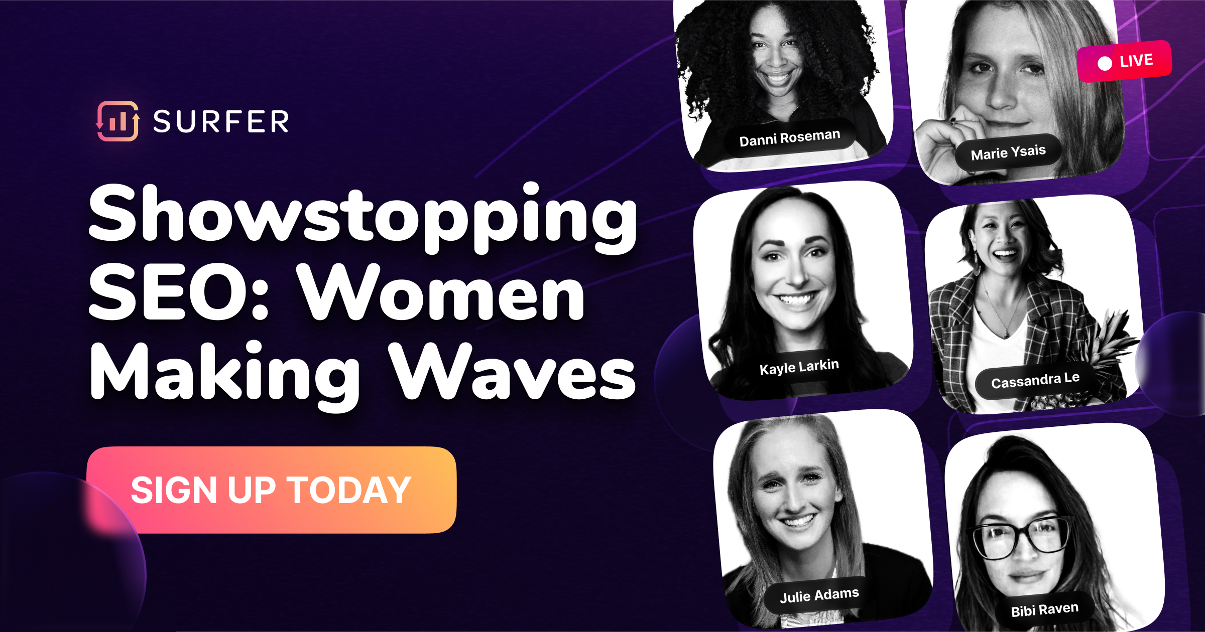 Luckily I work for an organization where I can create events that both interest me and uplift communities I care about. Showstopping SEO is a Surfer live panel discussion which brought awareness to the fact that male SEOs outnumber women 2:1....
