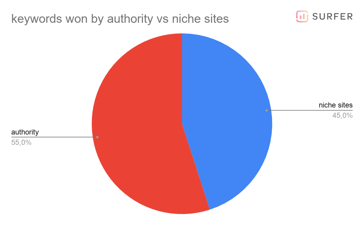 Let’s find out which keywords got more authority pages in search results, and what are the main reasons for that. And on the other hand, when niche websites were winners.