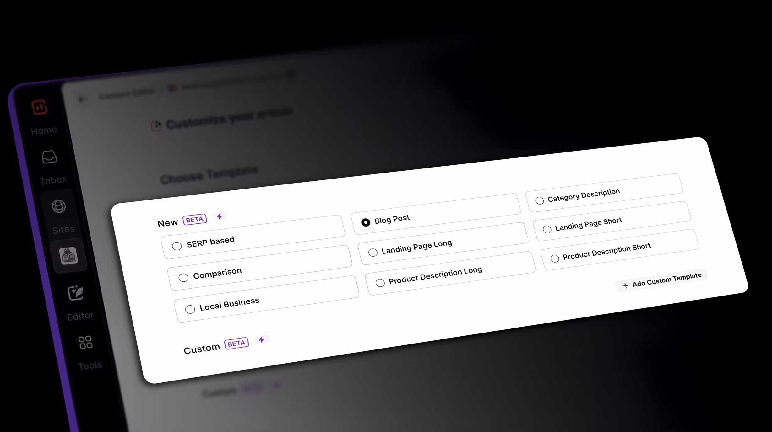 Save and apply custom outline templates in Content Editor. Make sure every article follows your best-performing format—without starting from scratch.