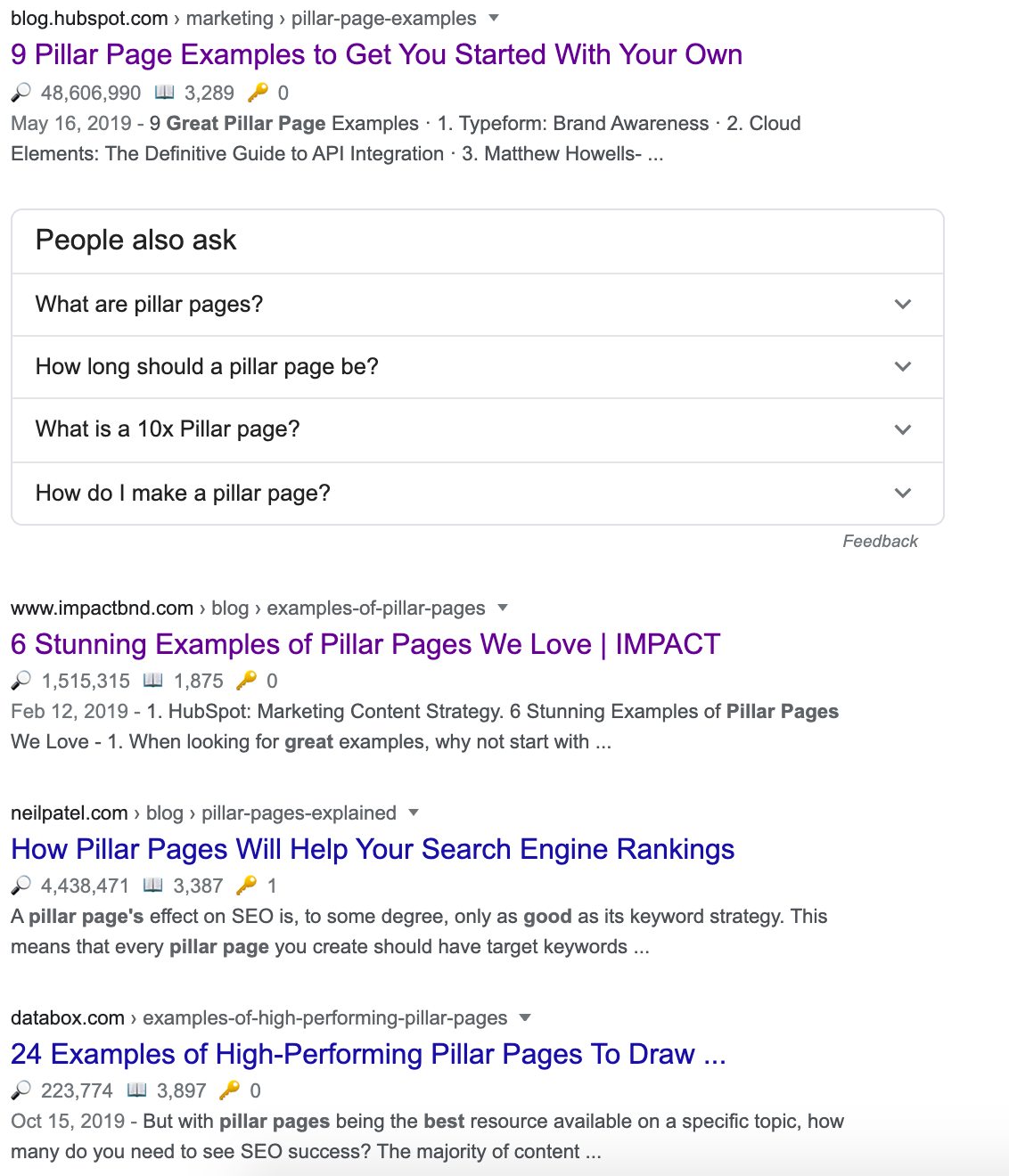 As you see, top four pages in Google for "pillar pages examples" are quite long.