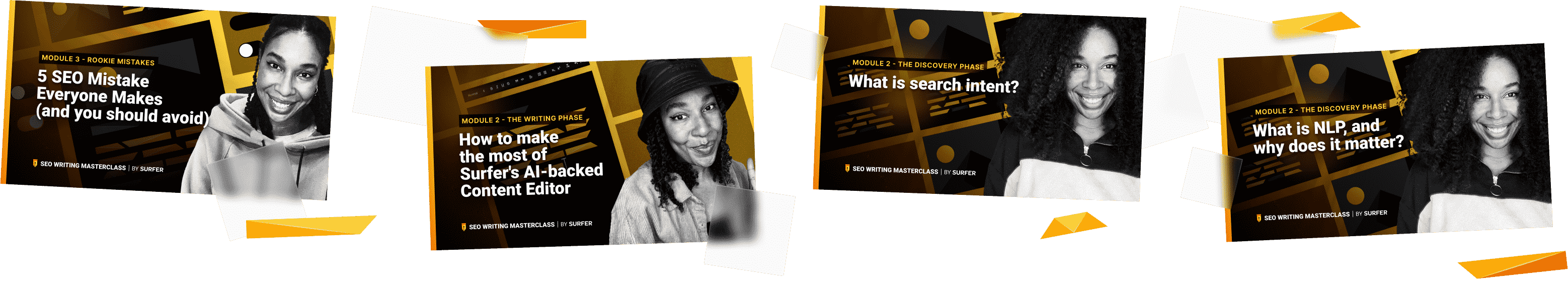 By the end of this masterclass, you’ll not only be certified in Surfer, you’ll confidently be able to implement what you’ve learned to refresh your content marketing strategy.