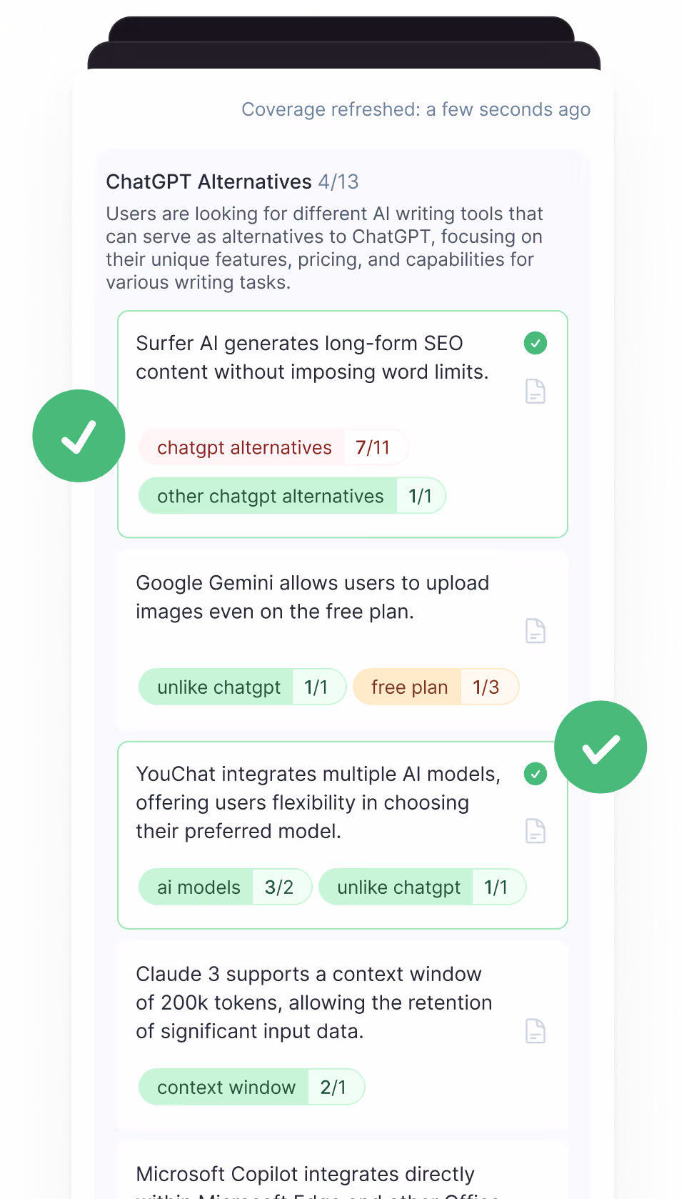 To rank higher, you need to cover every angle—not just keywords. Topics maps out the most relevant ideas and gaps, straight from top competitors, so your content stands out as the go-to authority for readers and search engines alike.